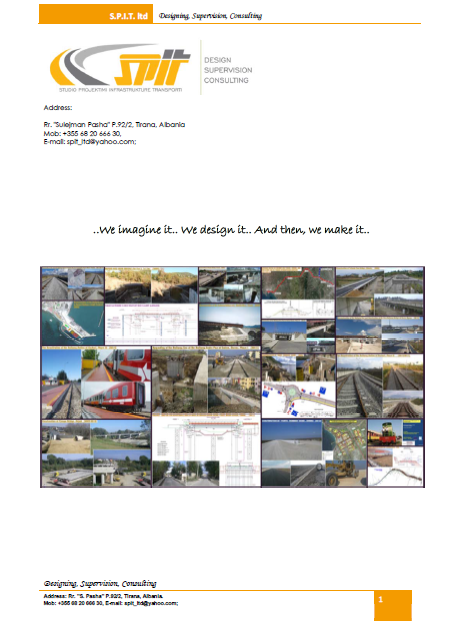 S.P.I.T. ltd was established in March 2000 and has evolved into one of the leading engineering consulting companies in Albania in the areas of engineering design, project management, supervision, quality assurance and consulting services. The engineering team of the firm has extensive experience of more than 30 years in transportation and infrastructure projects and has undertaken numerous project assignments both in Albania and abroad, mainly in roads and railways. In addition to design, S.P.I.T. shpk provides consulting services in preparation of tender documents, project management, construction supervision, quality control, expert appraisal, bid evaluation and post auditing.
